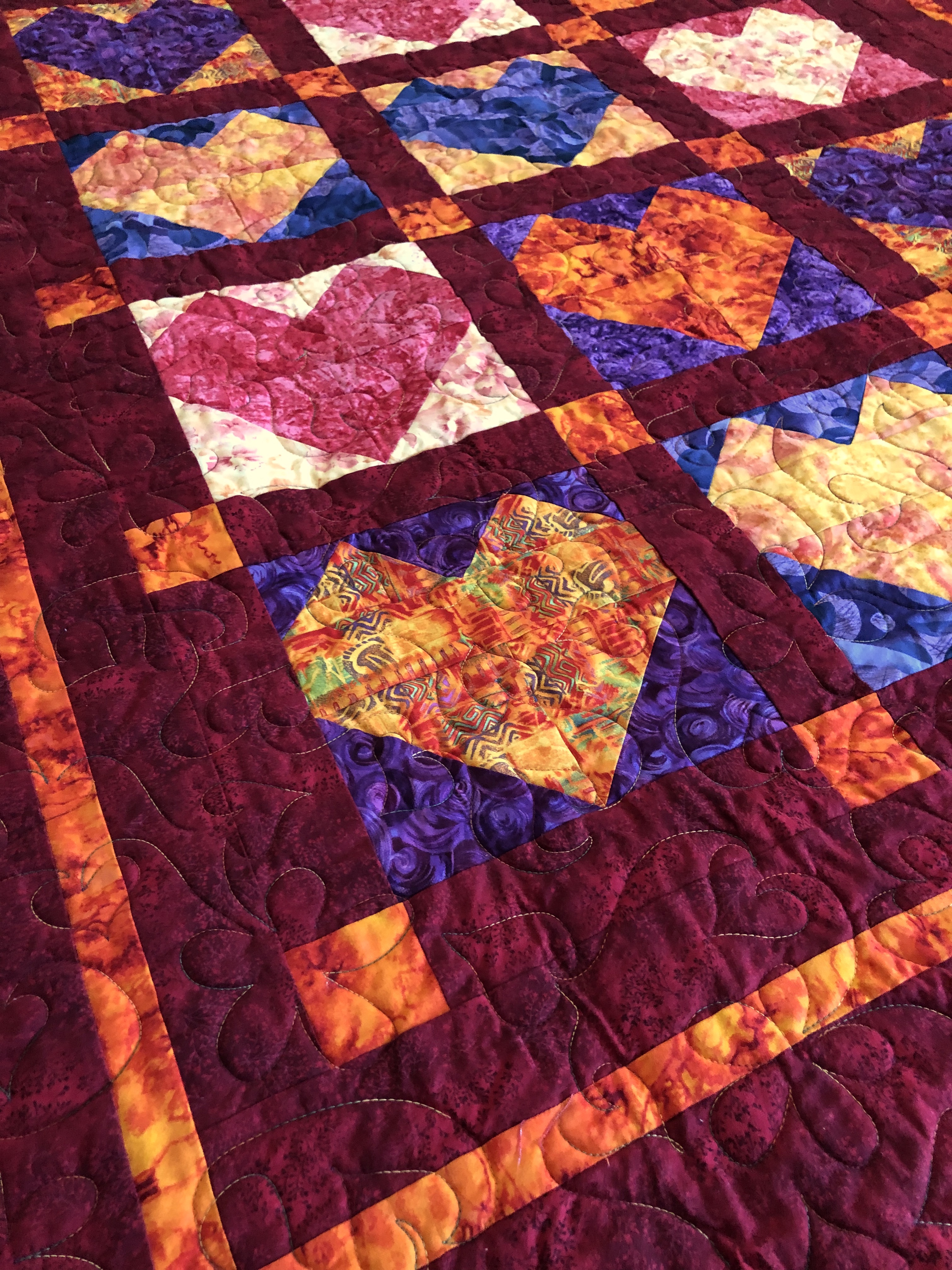 This quilt was another jump-start to my quilting passion in 2017 - after a few years away from the craft. I chose Tracy Brookshiers pattern for its simplicity and the ability of quickly getting me back into doing good ole triangles. I gifted this one to our friends Chris and Eric Tjensvold but honestly I do not think it’s their style really. So I’m holding onto it for inspiration while I make them another quilt more in their colorways. Even though I hate Valentines Day, I will say I am attached to this quilt - hearts and all.