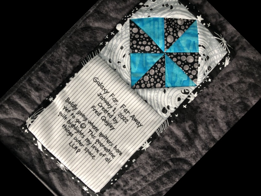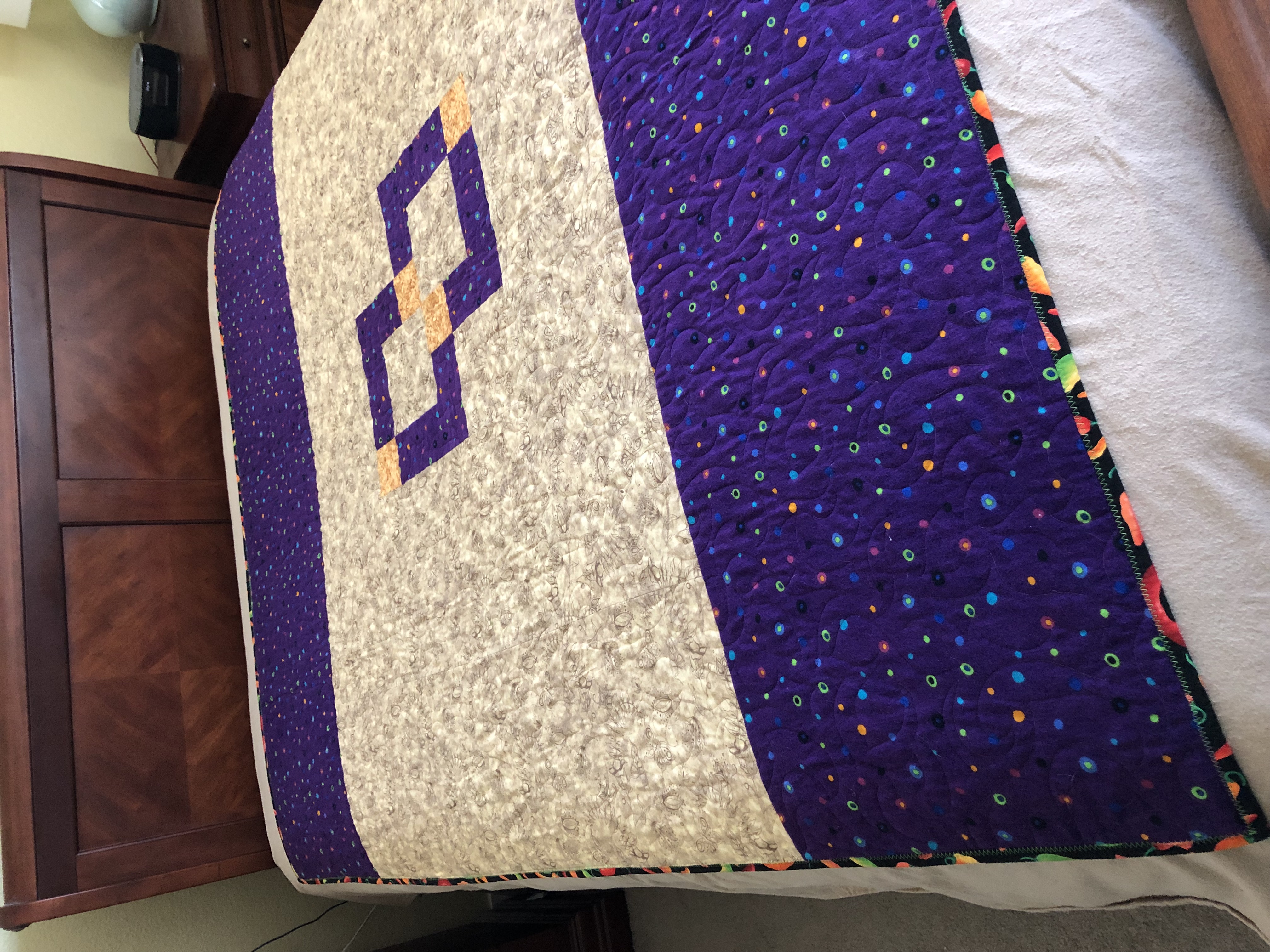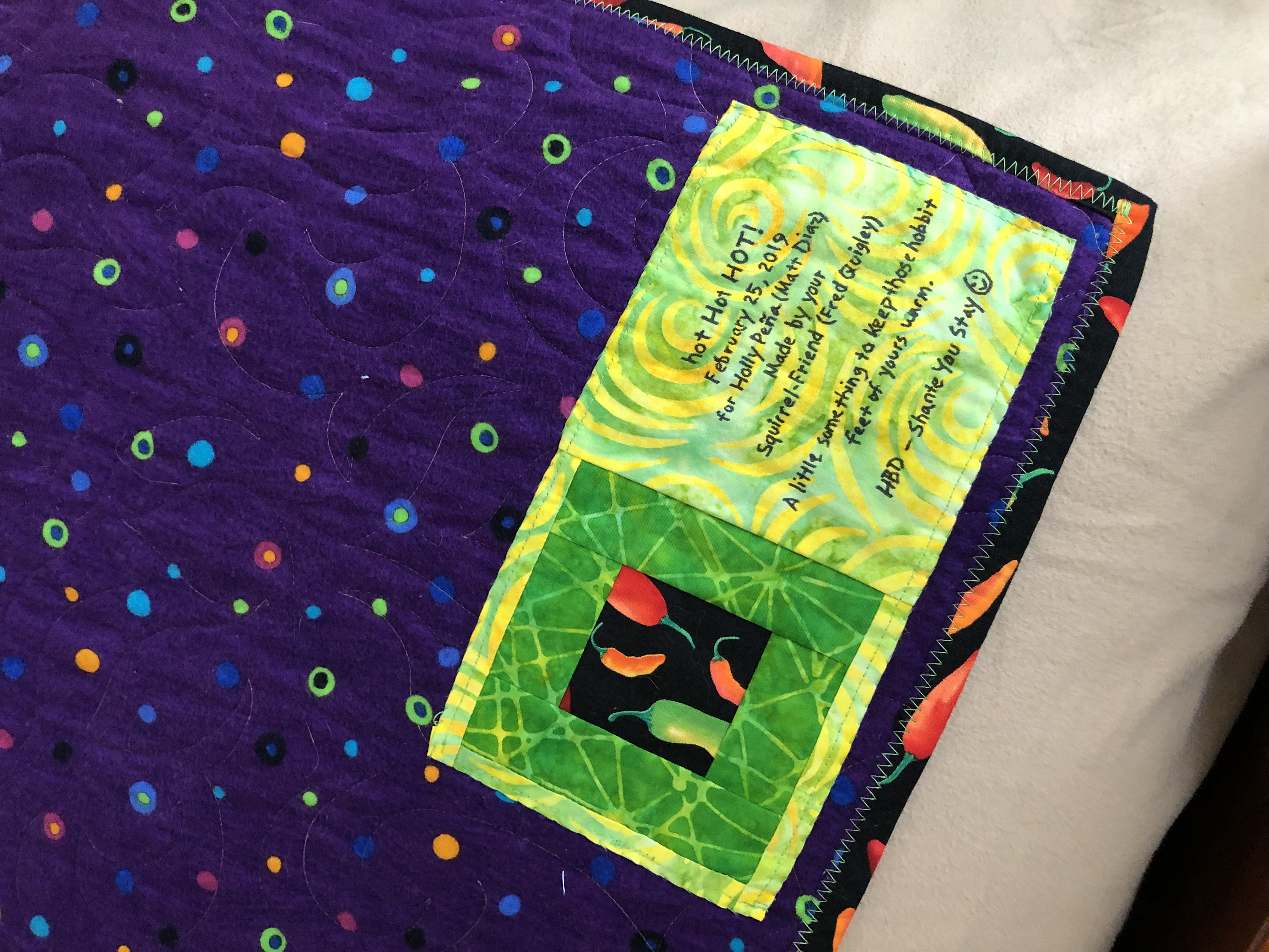A going away quilt for Matt Diaz on his journey to the Pacific Northwest - Seattle-bound. Pieced and bound by me but quilted by my friend and longarm extaordinaire, Molly Owens. This is the last quilt I sent out for longarm services - after this point, I began longarming my own quilts. Enjoy Matt - my squirrel friend from the runway - ru ru ru runway.