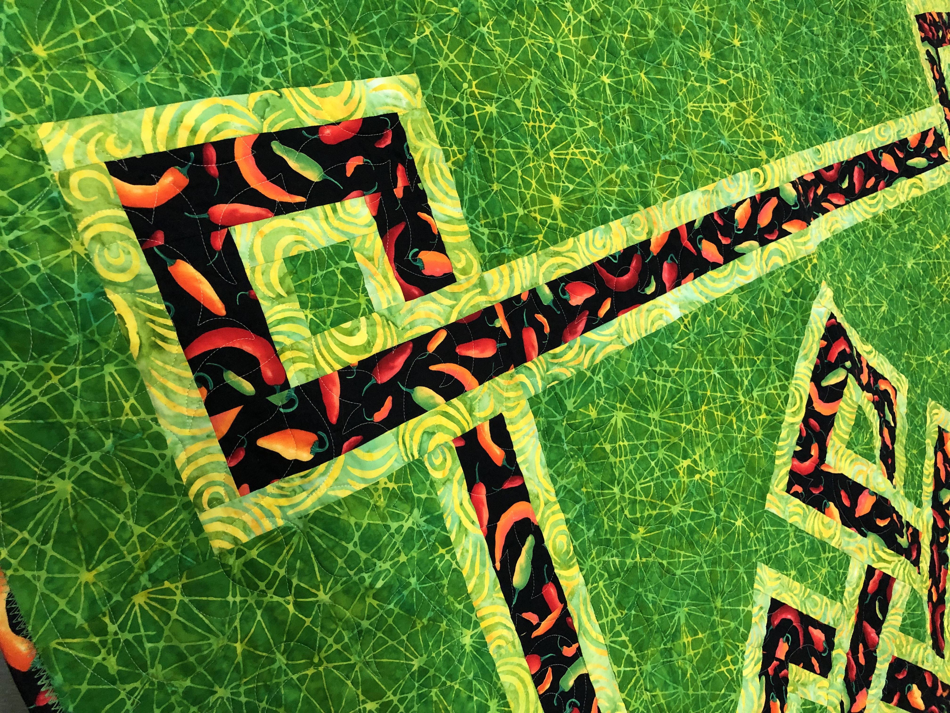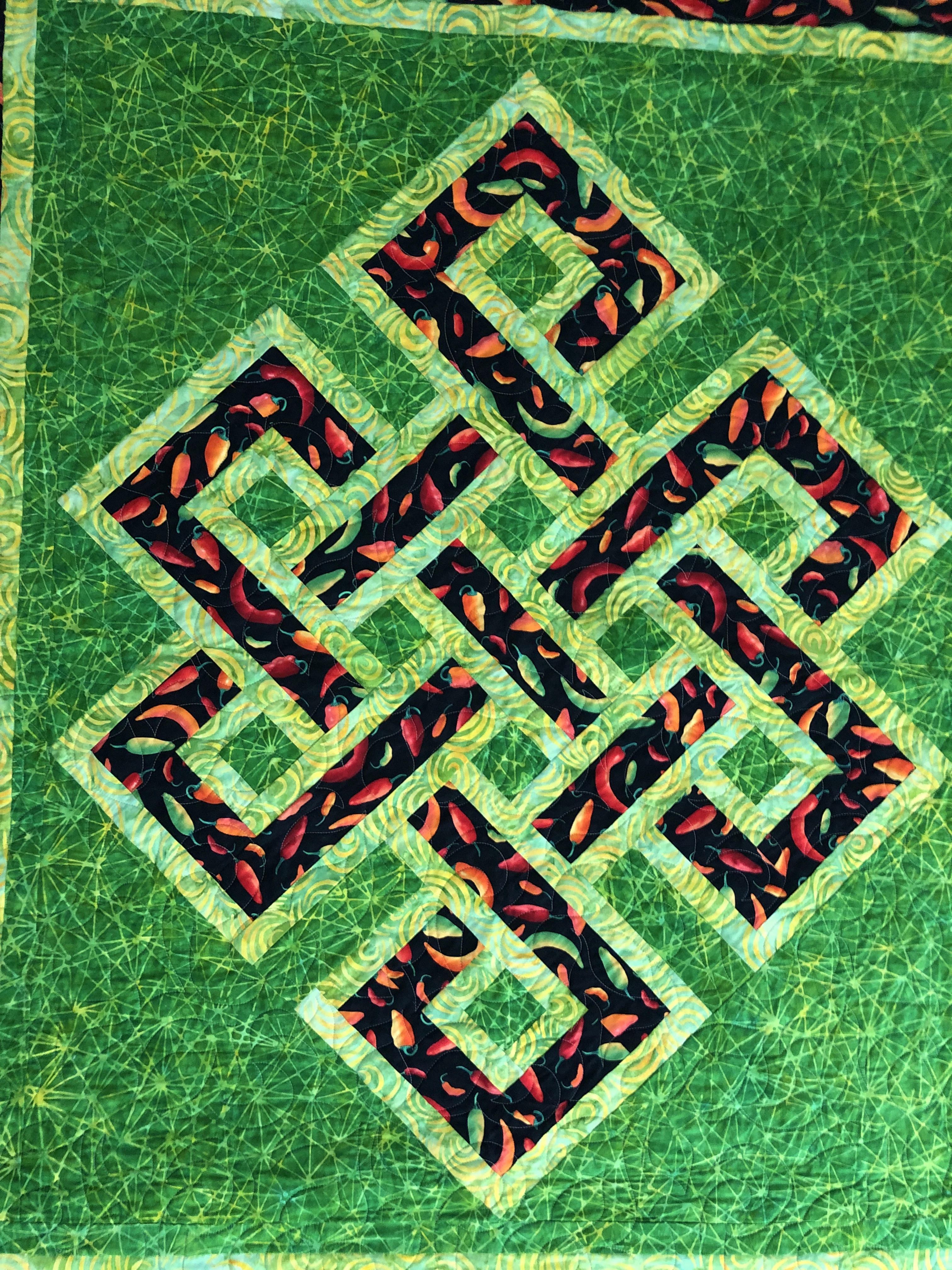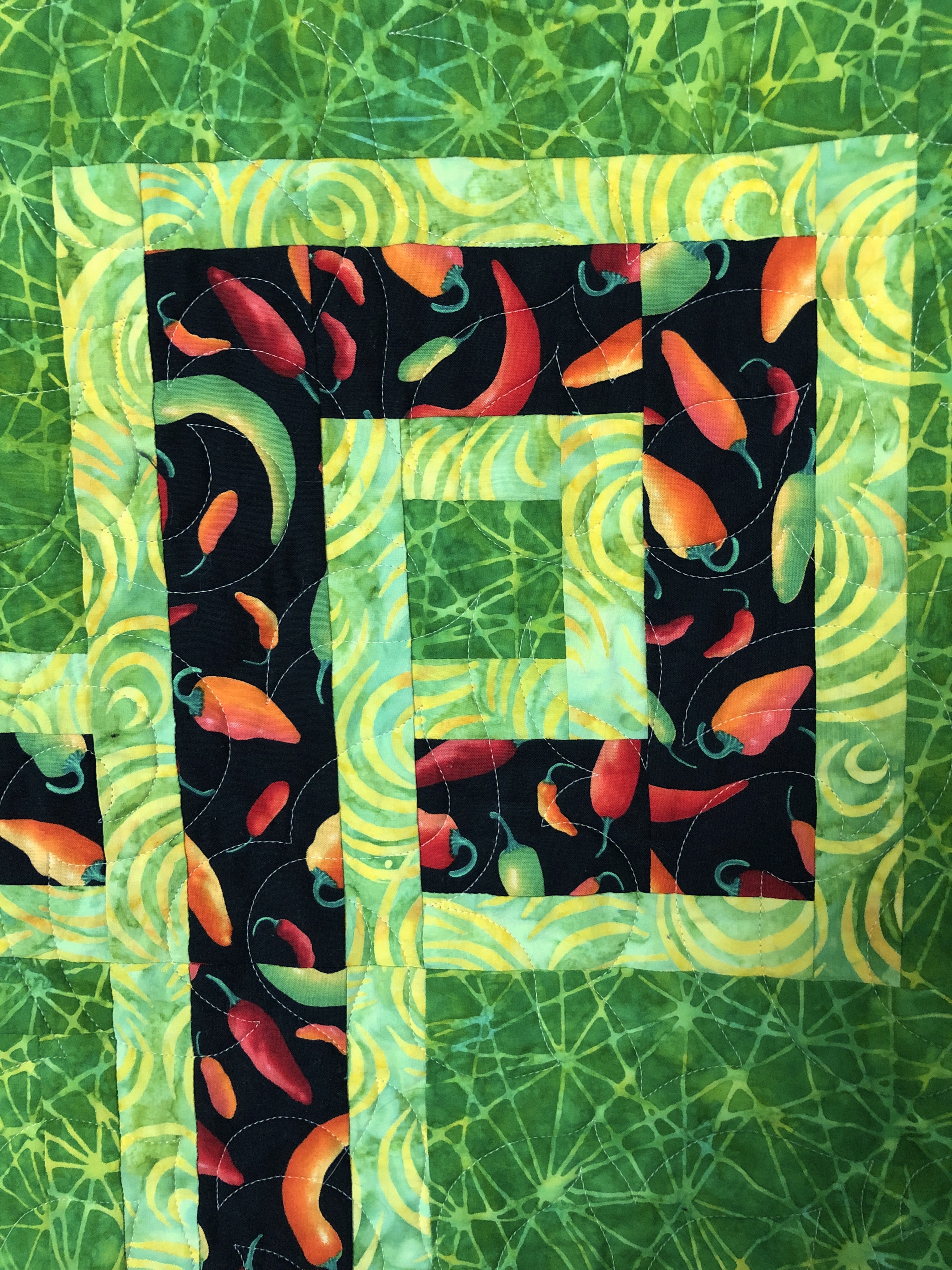 Chili Peppers, batiks green fractals
