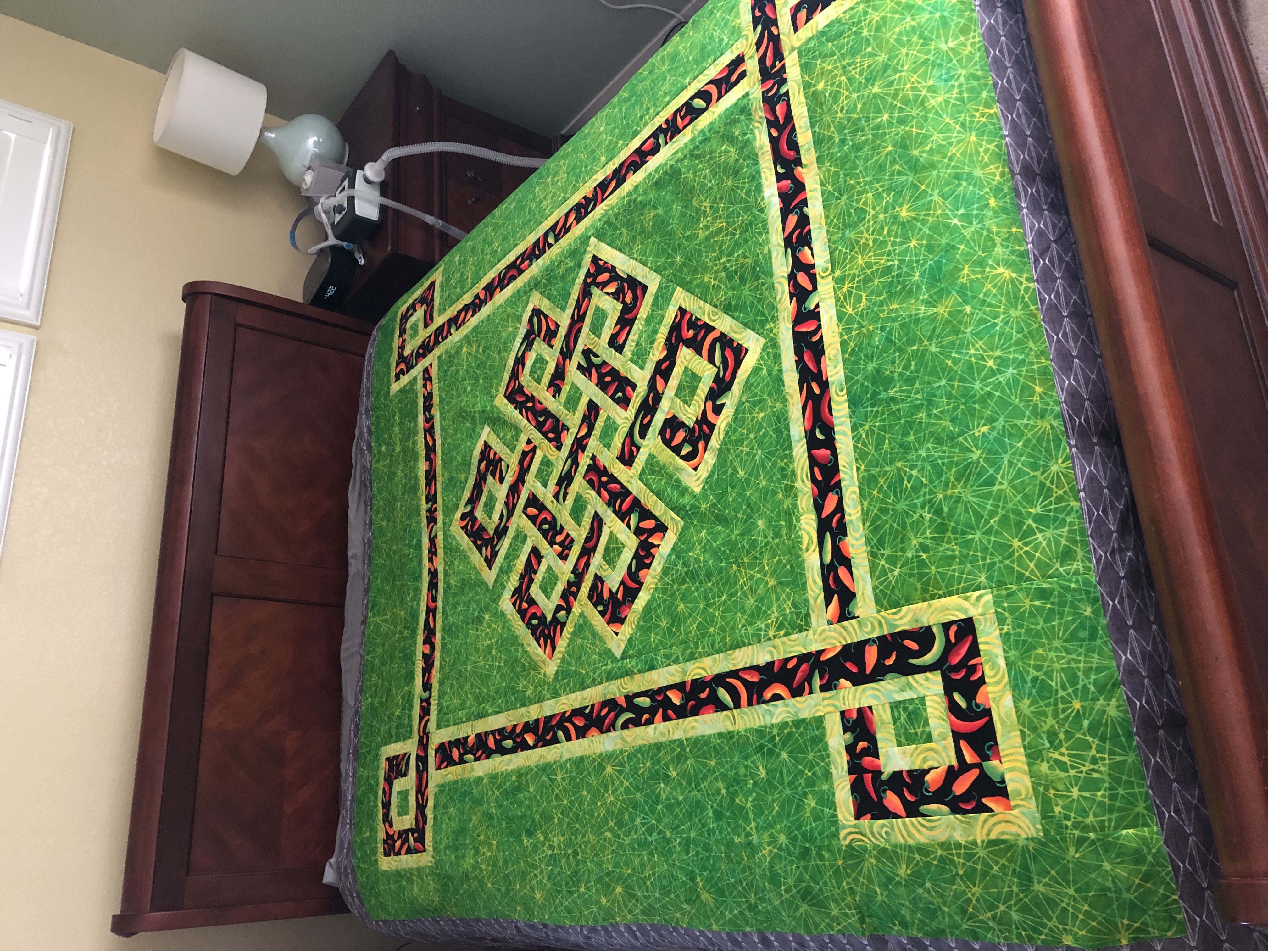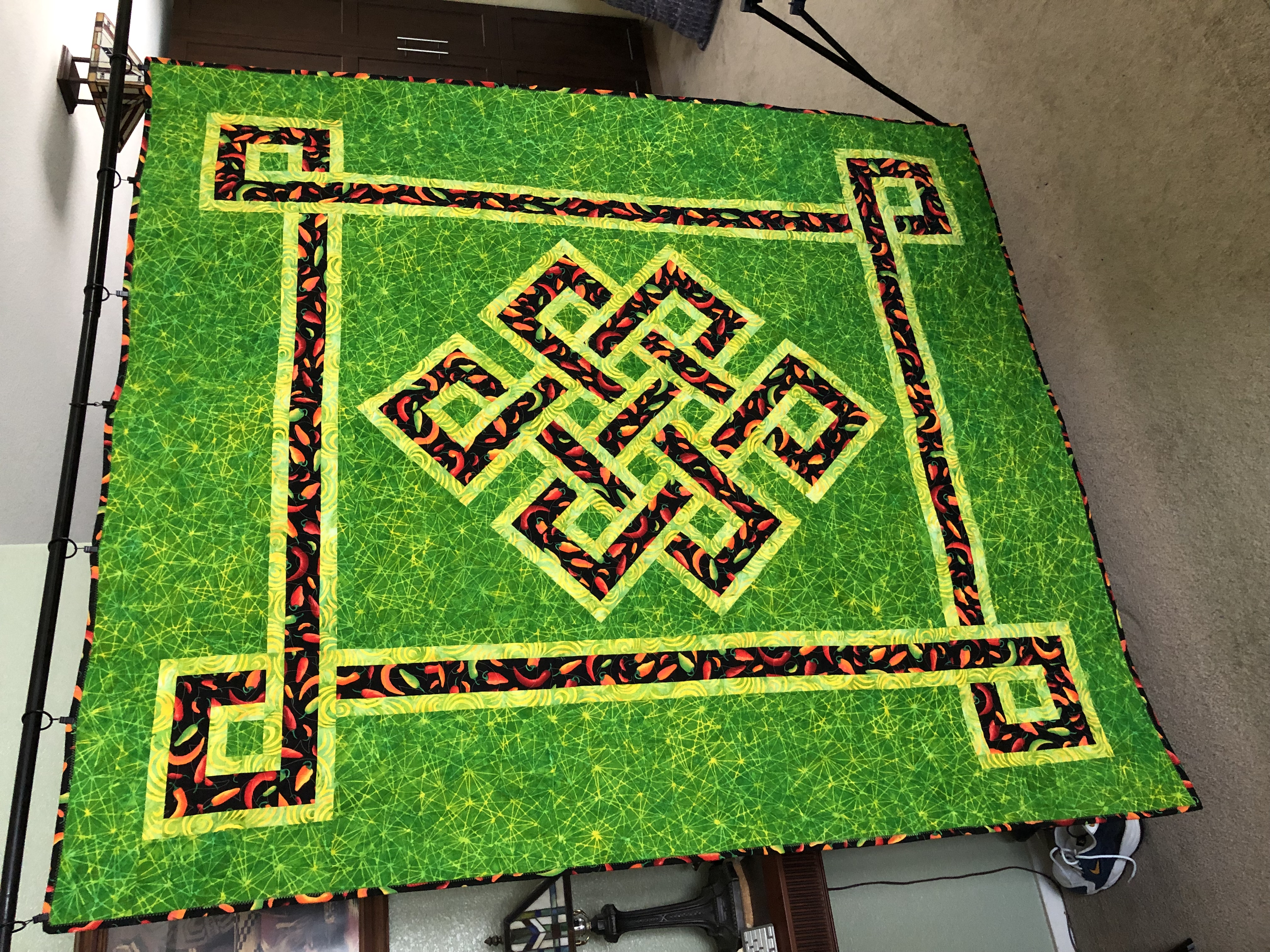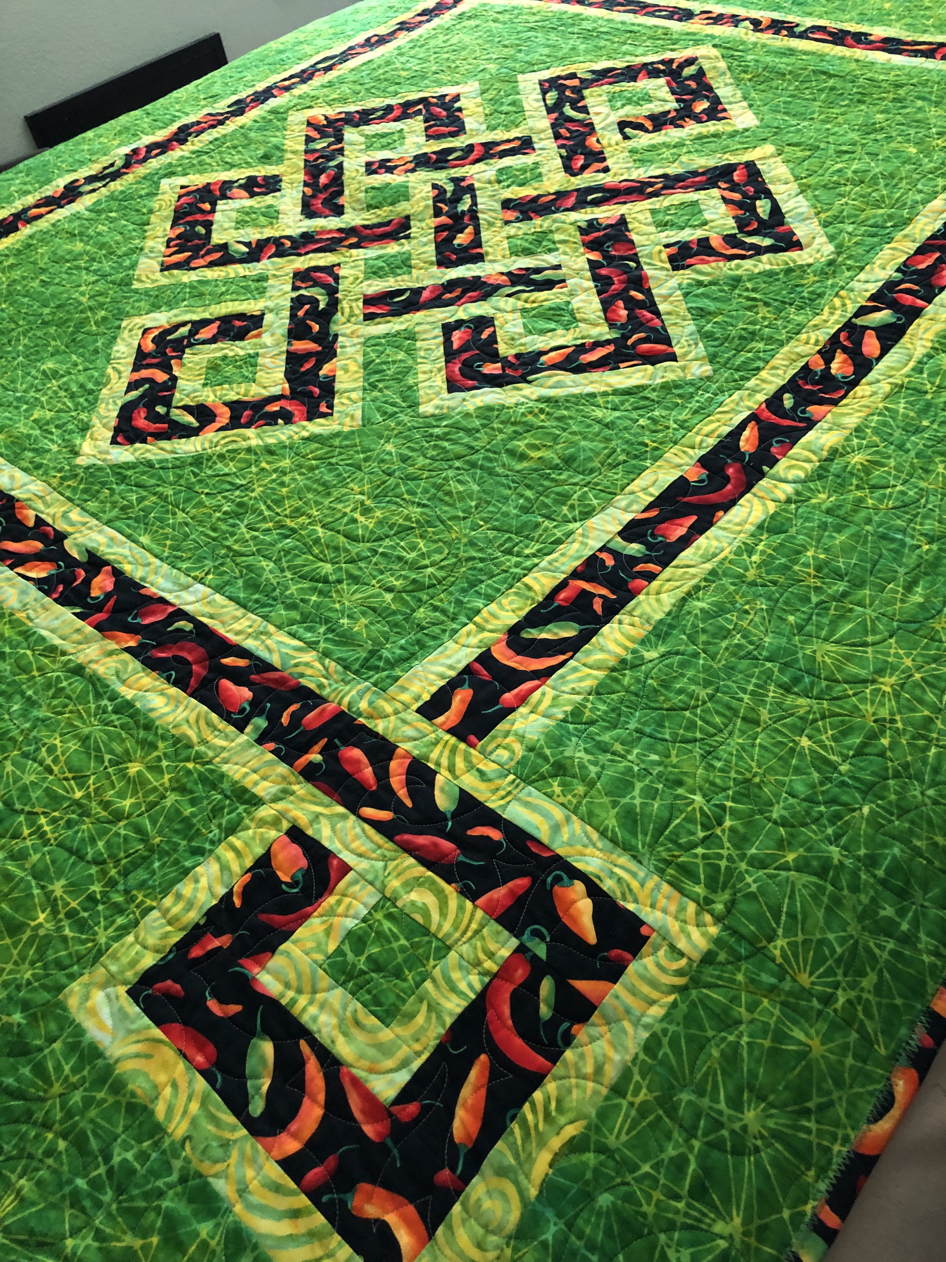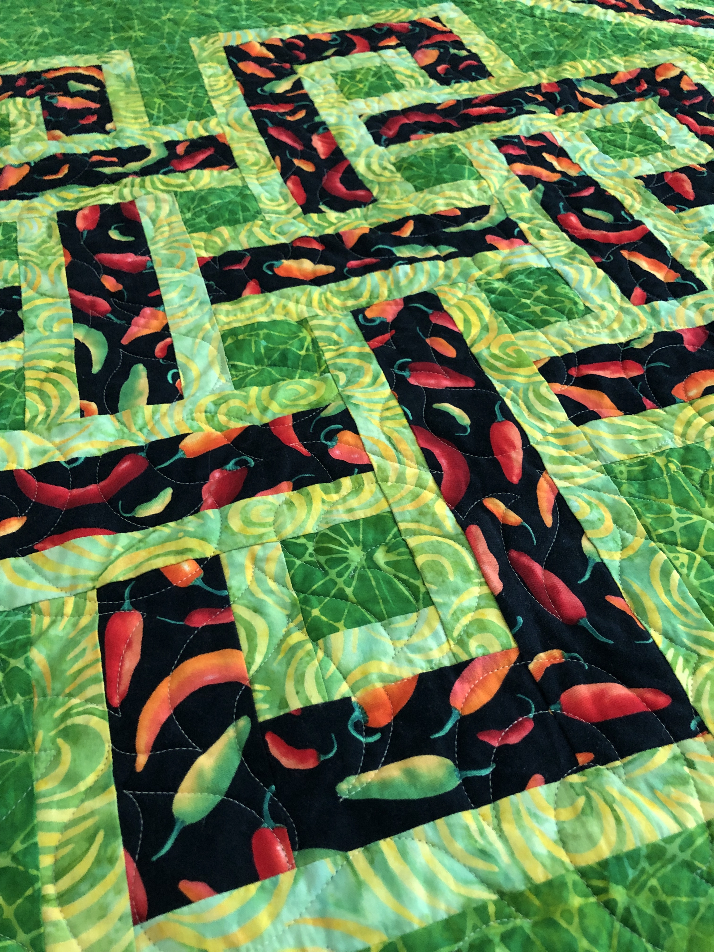 Chili Peppers, batiks green fractals